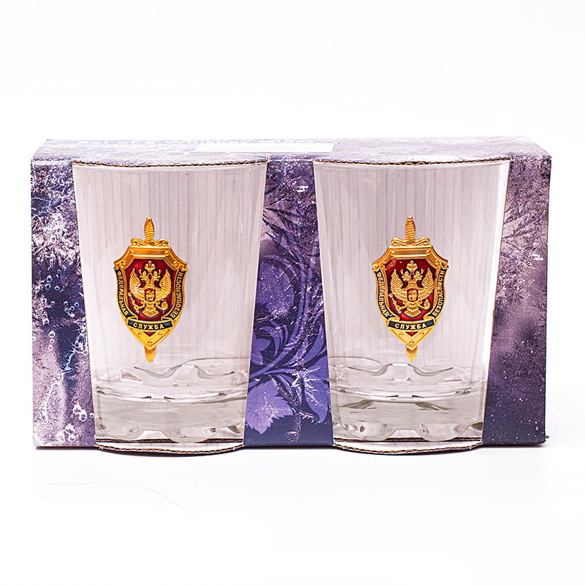 Стильные, современные стаканы из прозрачного закаленного стекла. На каждом стакане эмблема накладка Федеральной службы безопасности.
