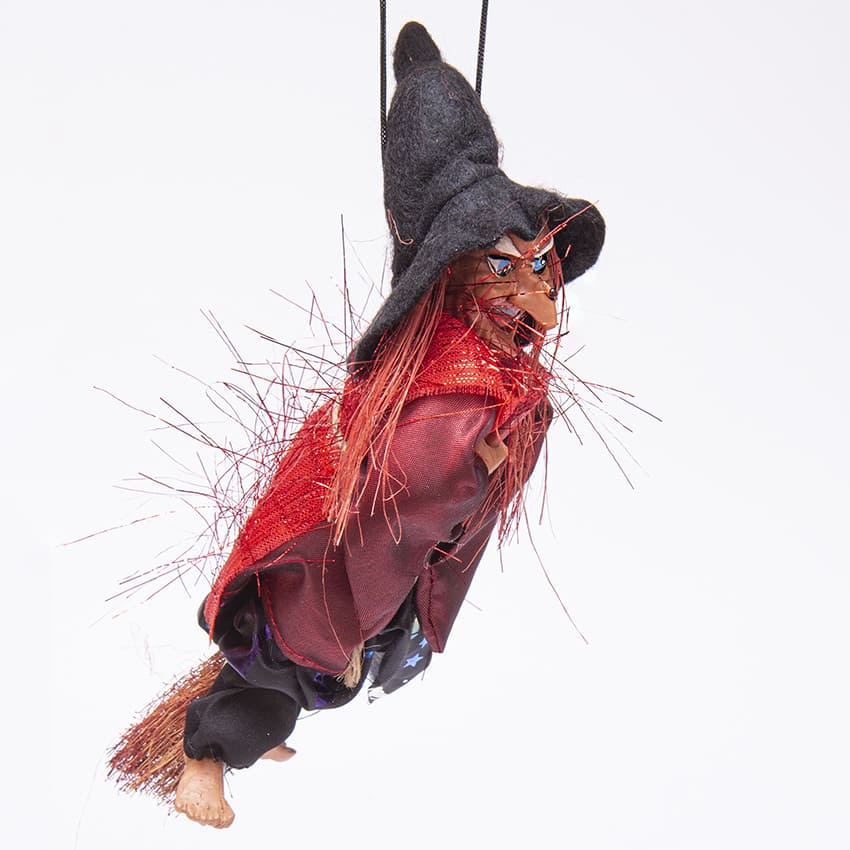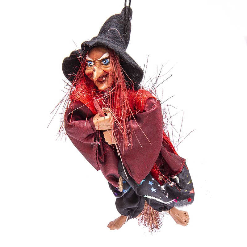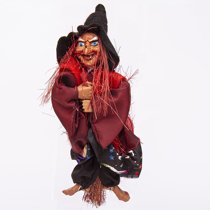 Баба Яга не просто забавная игрушка, это надежный оберег. Сзади к кукле прикреплена тесемочка, ее можно повесить на стену или новогоднюю елку, кажется, что Баба Яга летит.