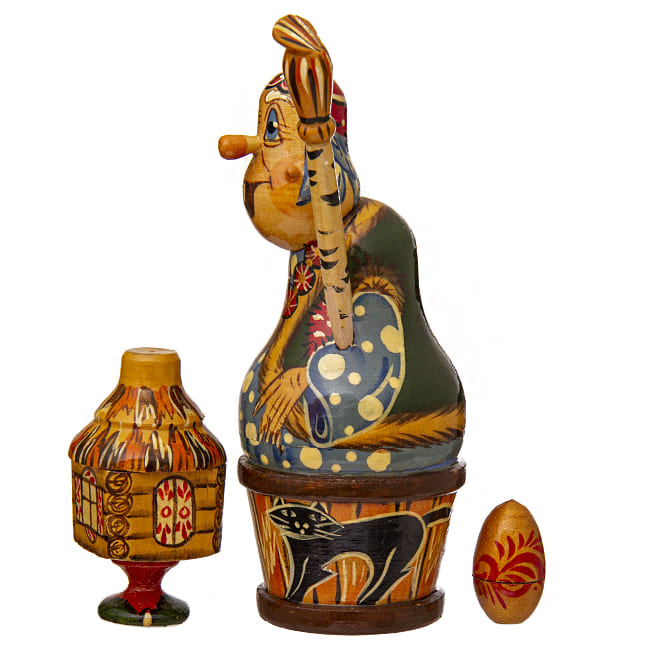 Вариант подарка из России. Матрешку Бабу Ягу дарят как необычный сувенир ручной работы или дополнение к другим сказочным персонажам. Про Бабу Ягу можно много рассказать, с ней связаны тысячи сказок, фольклорных рассказов и былин.