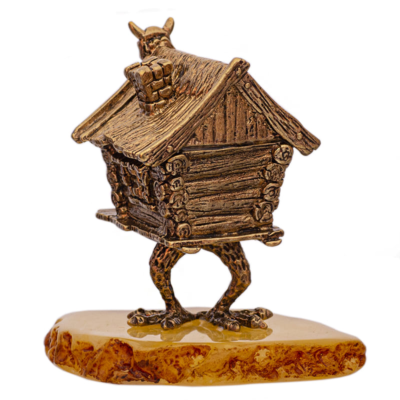 Избушка на курьих ножках литая на молочном янтаре 6 см