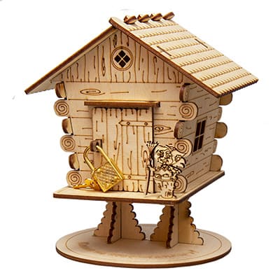 Вариант подарка из России. Копилку избушку дарят как необычный сувенир ручной работы или дополнение к игрушке Баба Яга. Про персонаж Бабы Яги можно много рассказать, с ней связаны тысячи сказок, фольклорных рассказов и былин.