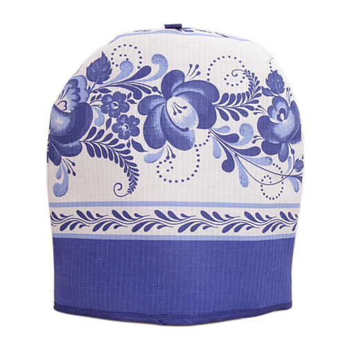 Грелка сшита из натуральной ткани - приятного, мягкого хлопка. Колпак Гжель понравится тем, кто любит изделия из экологически чистых материалов.