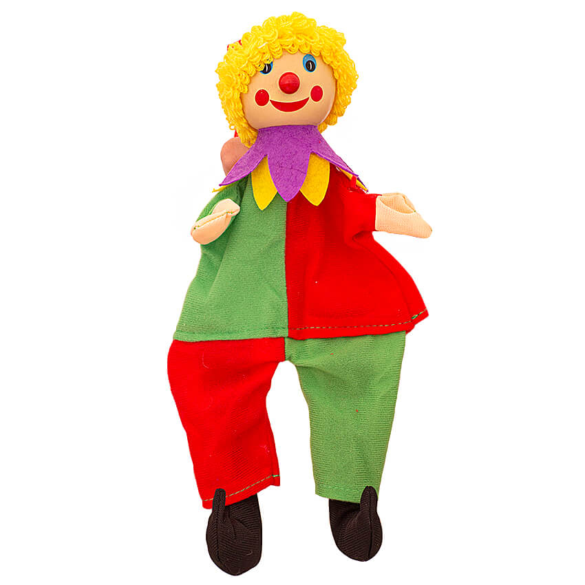 Клоун сделан из ткани, внутрь просовывается рука. Игрушка удобная подойдет для как для взрослой, так и для детской руки. Подойдет для домашнего театра, сценок, игровых постановок.