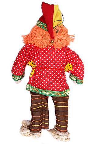 Кукла Петрушка в традиционном скоморошьем костюме: