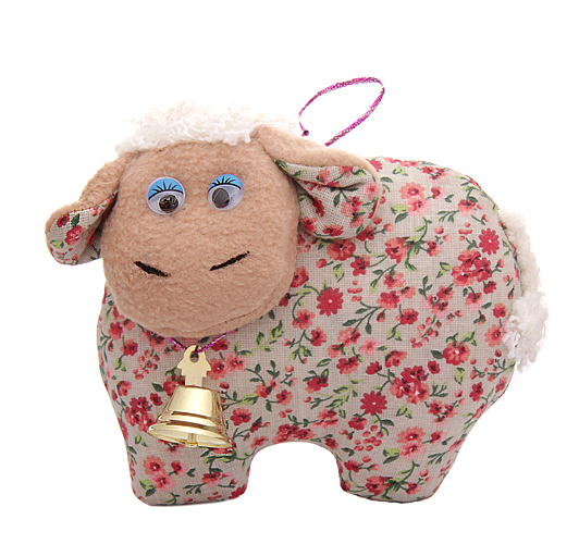 Овечку можно использовать как обычную елочную игрушку - у нее есть веревочка, овечка - легкая и компактная. На шее - маленький, металлический колокольчик. Ткань в мелкий цветочек, в приглушенных тонах. Овечка совершенно безопасная, красивая игрушка для ребенка. Легкая, маленькая. Ее можно повесить на стену в детской, на коляску или на кроватку. Кому подарить: кто коллекционирует мягкие игрушки, кто родился в год Овцы. .