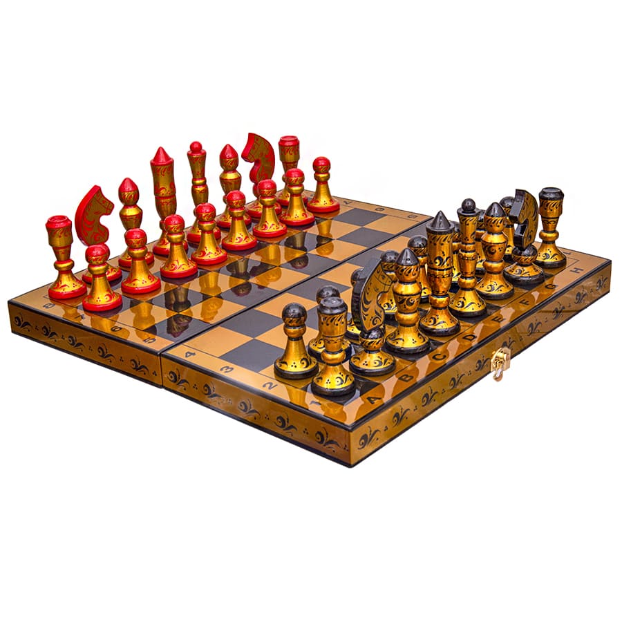 Авторские шахматы Золотая Хохлома 36 х 36 см