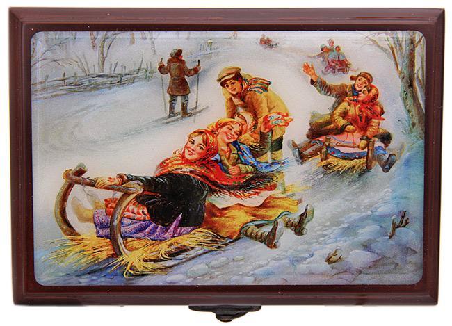 Шкатулка с веселым, зимним сюжетом, подойдет в качестве подарка женщине любого возраста.