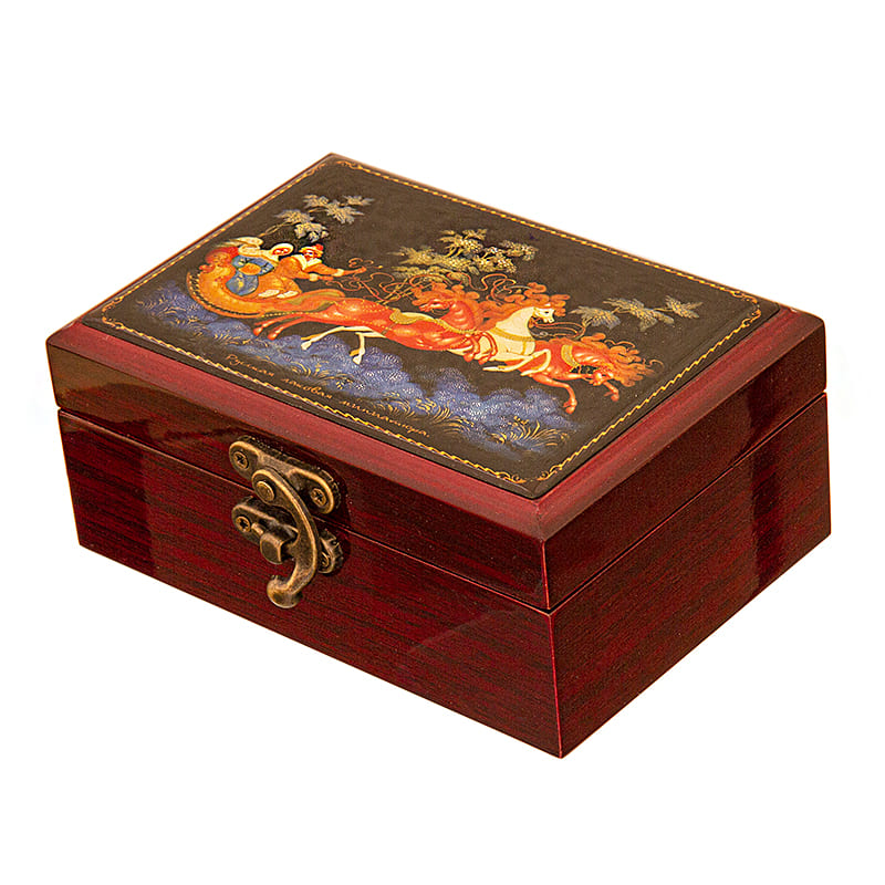 Недорогая, яркая шкатулка с изображением зимних гуляний у стен московского Кремля: