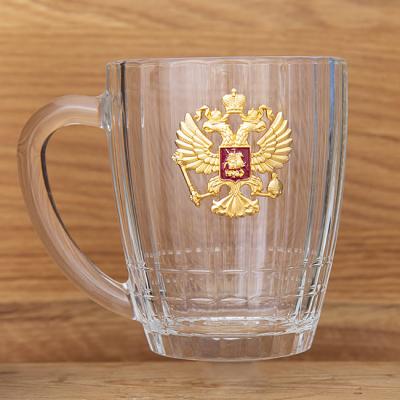 Стеклянная пивная кружка герб России: