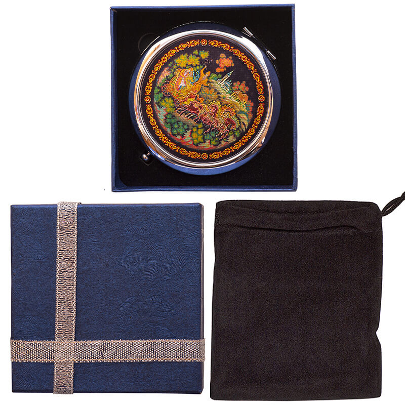 Карманное зеркало в подарочной коробке Палех Тройка 7 см
