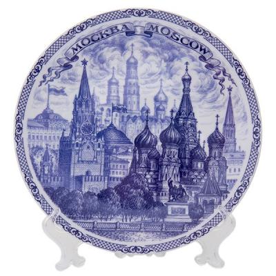 Сувенирная тарелка с подставкой Москва Гжель 20 см