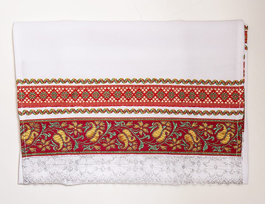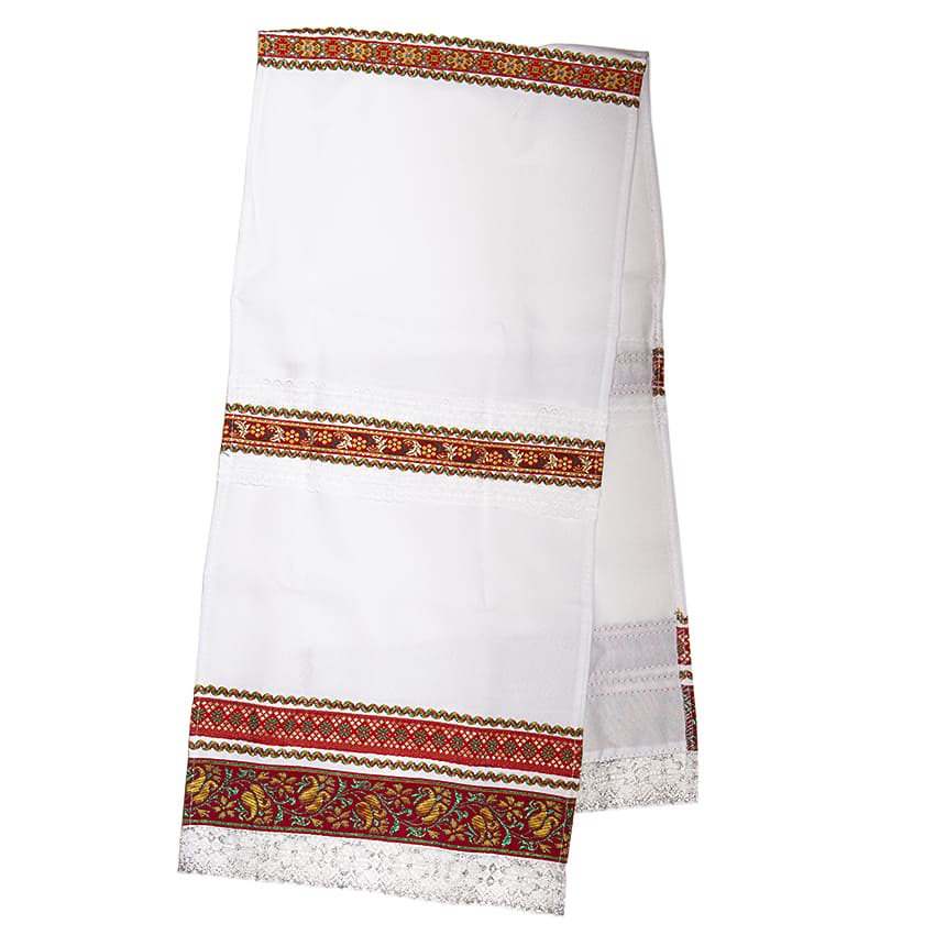 Подходит для праздничных и торжественных случаев, можно использовать как пасхальный, свадебный и праздничный рушник.