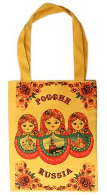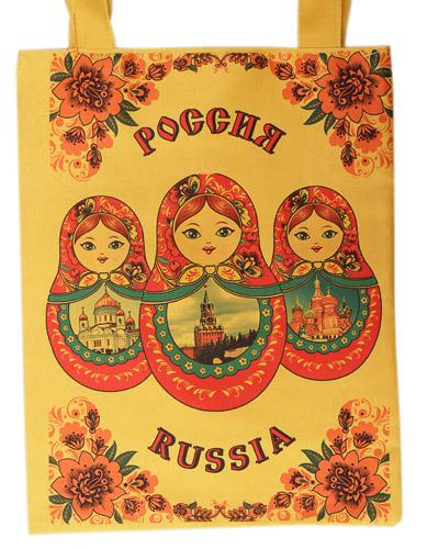 Текстильная сумка с принтом ручной работы - матрешки и надпись Россия.
