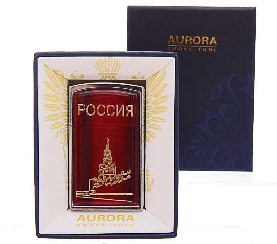 Миниатюрная зажигалка с эмалевой красной поверхностью и золотым образом Спасской башни: