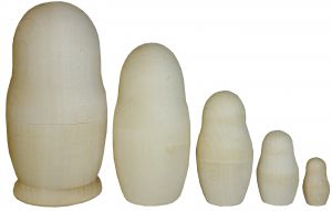 Заготовка матрешки 5-кукольная. Высота первой матрешки 11 см. Поверхность шлифованная, подготовлена под роспись. Части хорошо подогнаны, плотно закрываются.