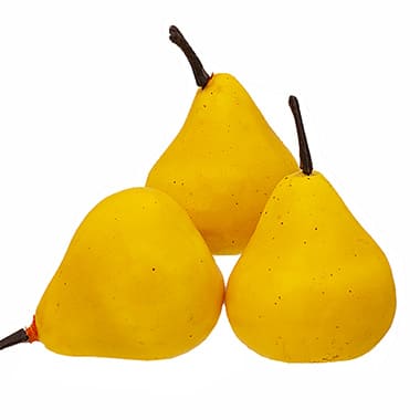 Муляжи груши желтого цвета, маленькие. Высота каждой 3,5 см, сделаны из легкого пластика.