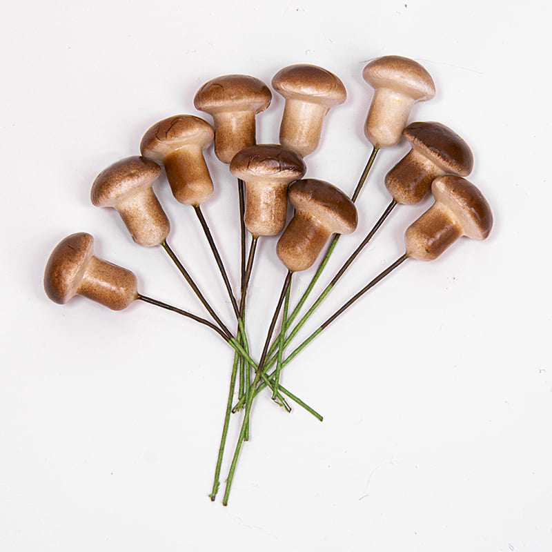 В комплекте 10 грибов, размер гриба 2 х 2 см, общая длина проволочной ножки с грибом 9 см. Грибы издали смотрятся как настоящие.