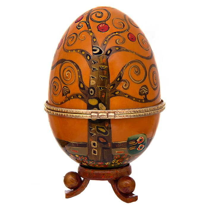 Шкатулка пасхальное яйцо из дерева. Поверхность покрыта прозрачным лаком. Художественная ручная роспись, изображен фрагмент картины Густава Климта "Адам и Ева". Миниатюра написана масляными красками профессиональным художником. Шкатулка открывается посередине.