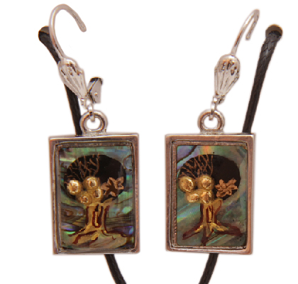 Поверхность расписана вручную профессиональным художником. На серьгах и подвеске изображено Древо жизни.